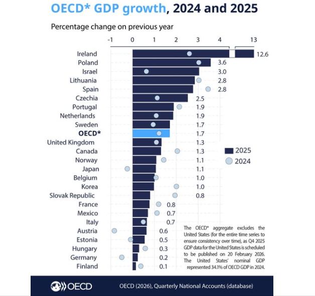 Zdroj: https://www.facebook.com/theOECD/posts/initial-annual-estimates-for-2025-indicate-that-oecd-gdp-growth-increased-to-17-/1363670109138760/