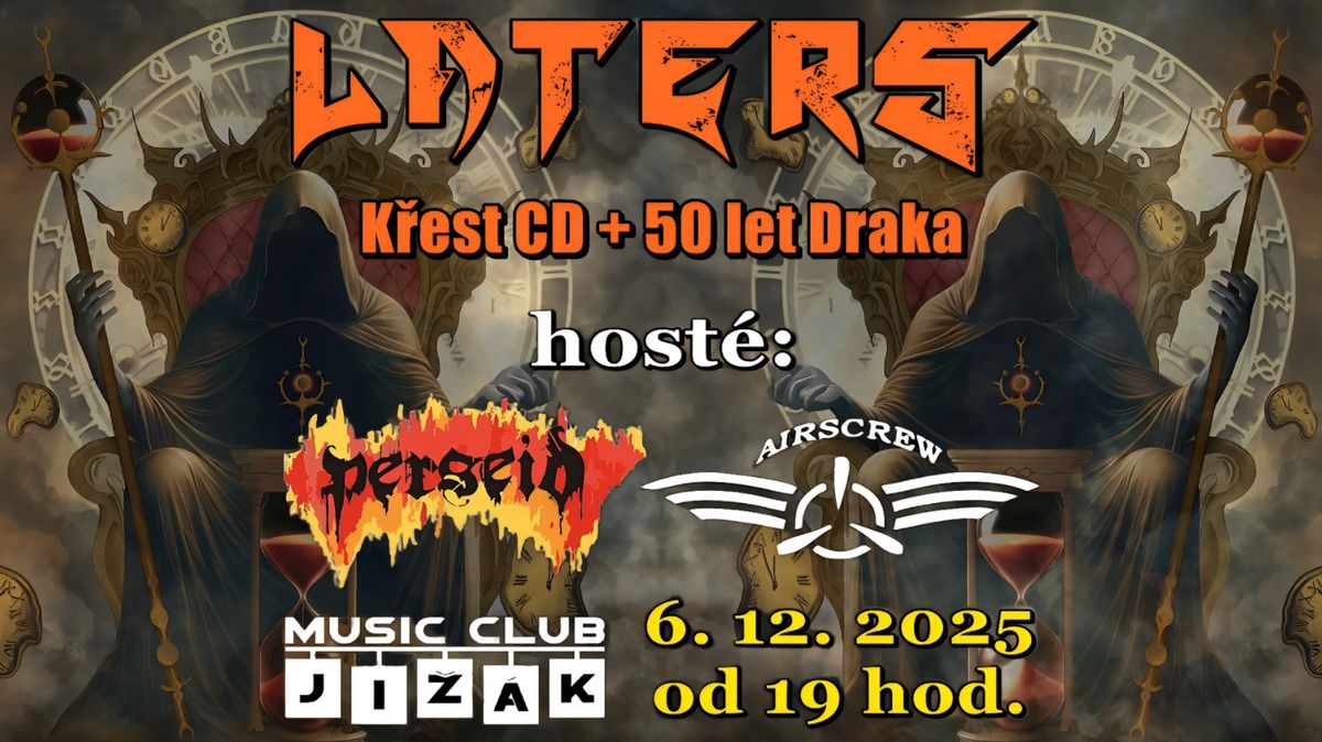 - Program: Křest nového CD LATERS + koncerty Perseid a Airscrew