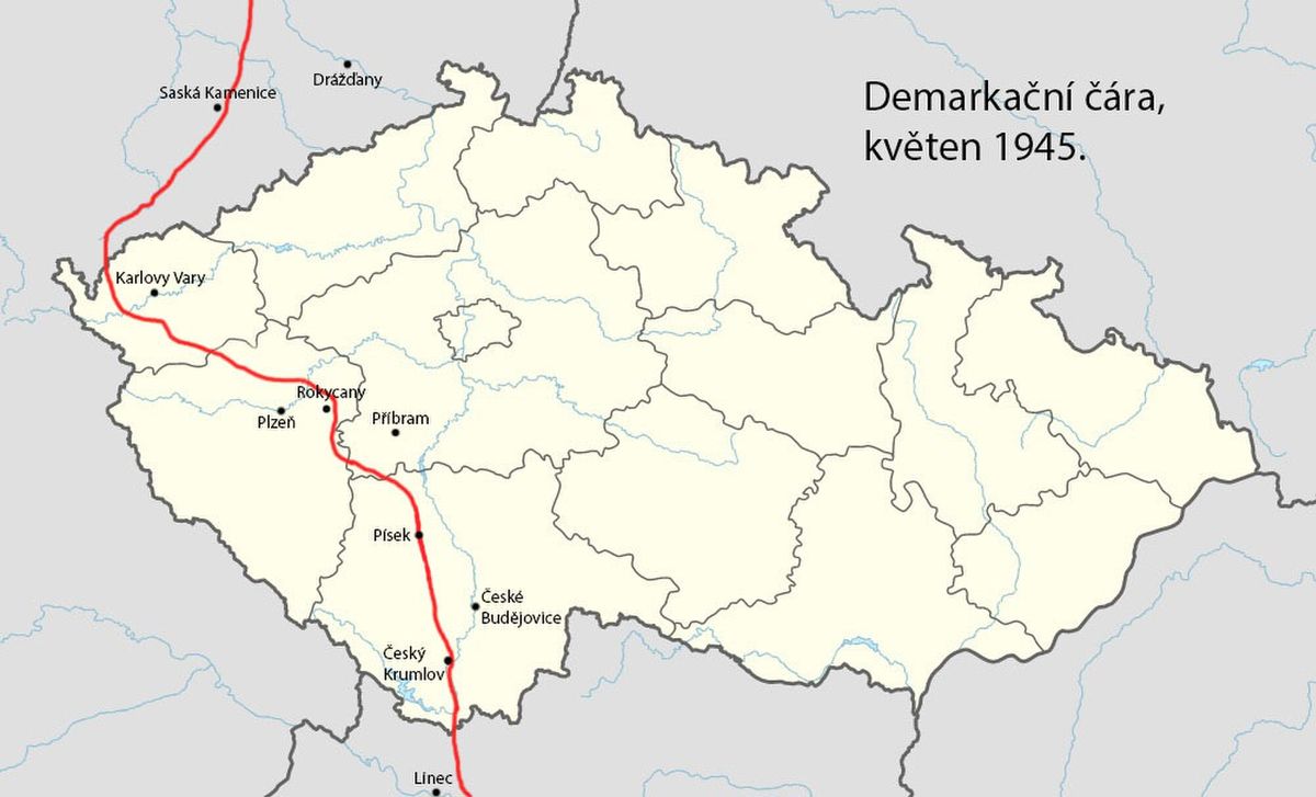 Demarkační linie mezi sovětskou a americkou armádou, květen 1945