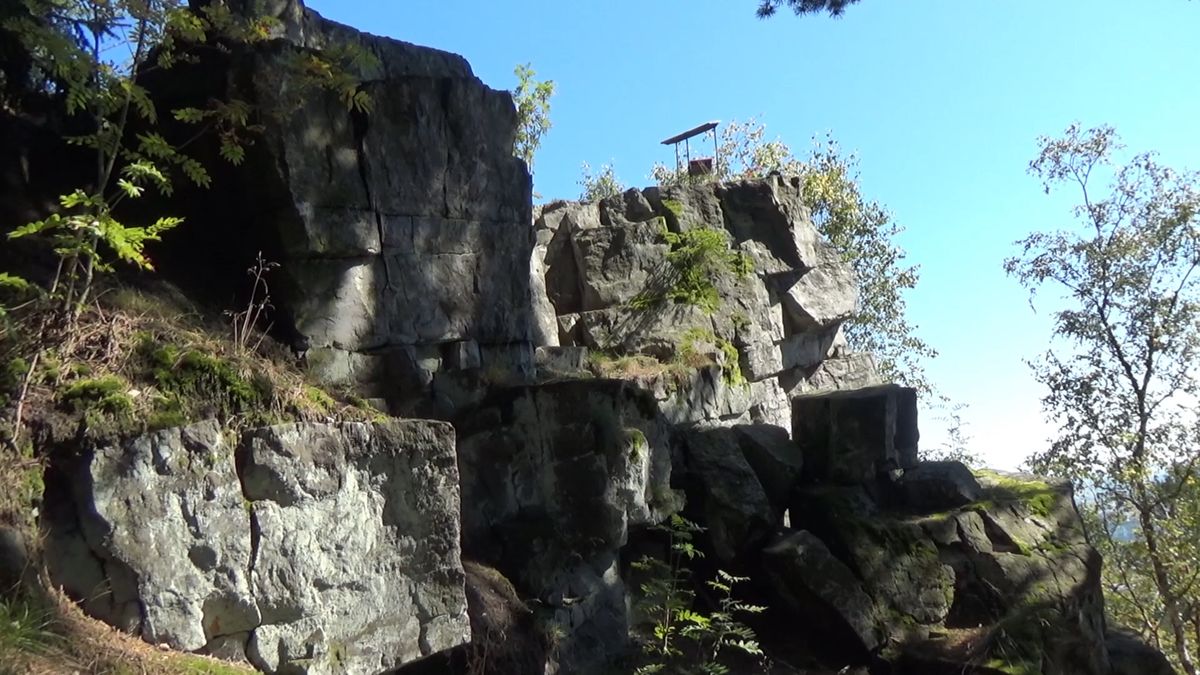 Je to naprostá pravda. Stejně jako fakt, že na nejvyšším místě stanete u podobné hrany jako na Jindřichově skále – pod sebou nyní pro změnu máte patnáctimetrovou stěnu. A z hrany ničím nerušený výhled směrem na Příbramsko.