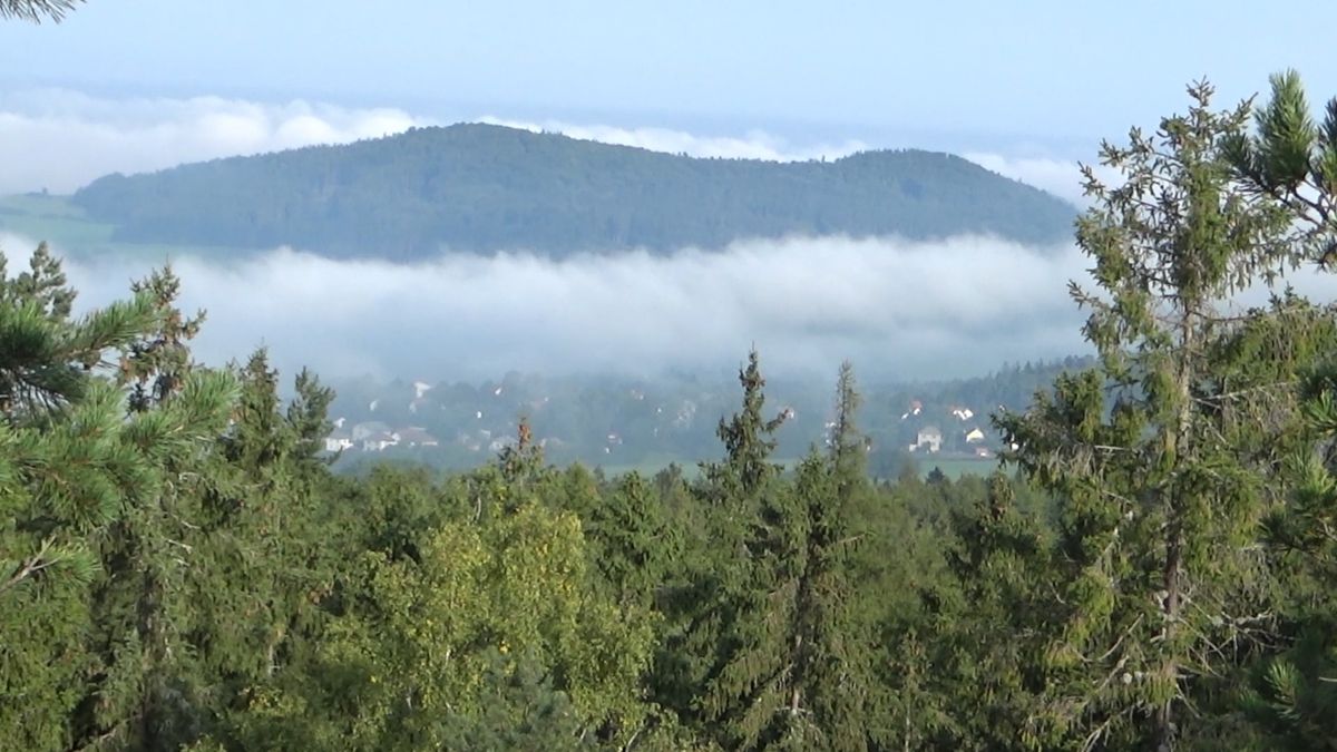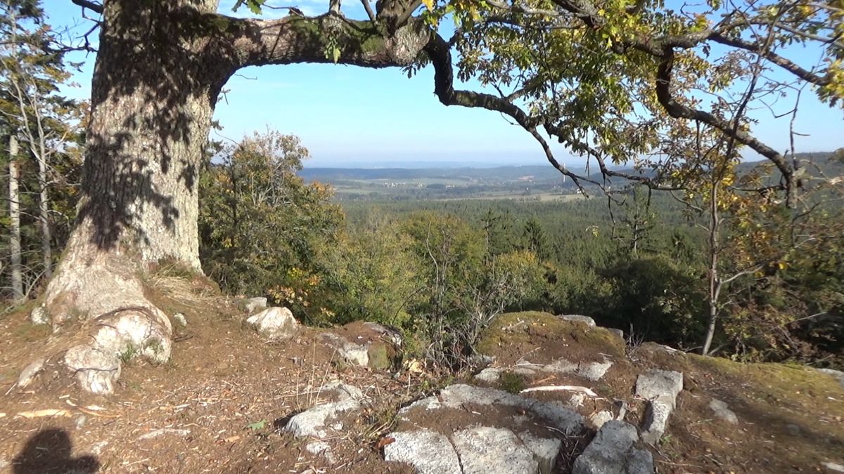 Z okraje vrcholových partií se naskýtá až překvapivě daleký výhled – neměl jsem problém zahlédnout zasněžené šumavské vrcholy. Uvádí se, že když tu stávala rozhledna (vysoká byla 18 metrů, vyrostla tu v roce 1888, o 27 let později ale byla z bezpečnostních důvodů stržena), byly vidět skoro celé Čechy, Šumava, ale i Krušné hory a snad i Krkonoše.