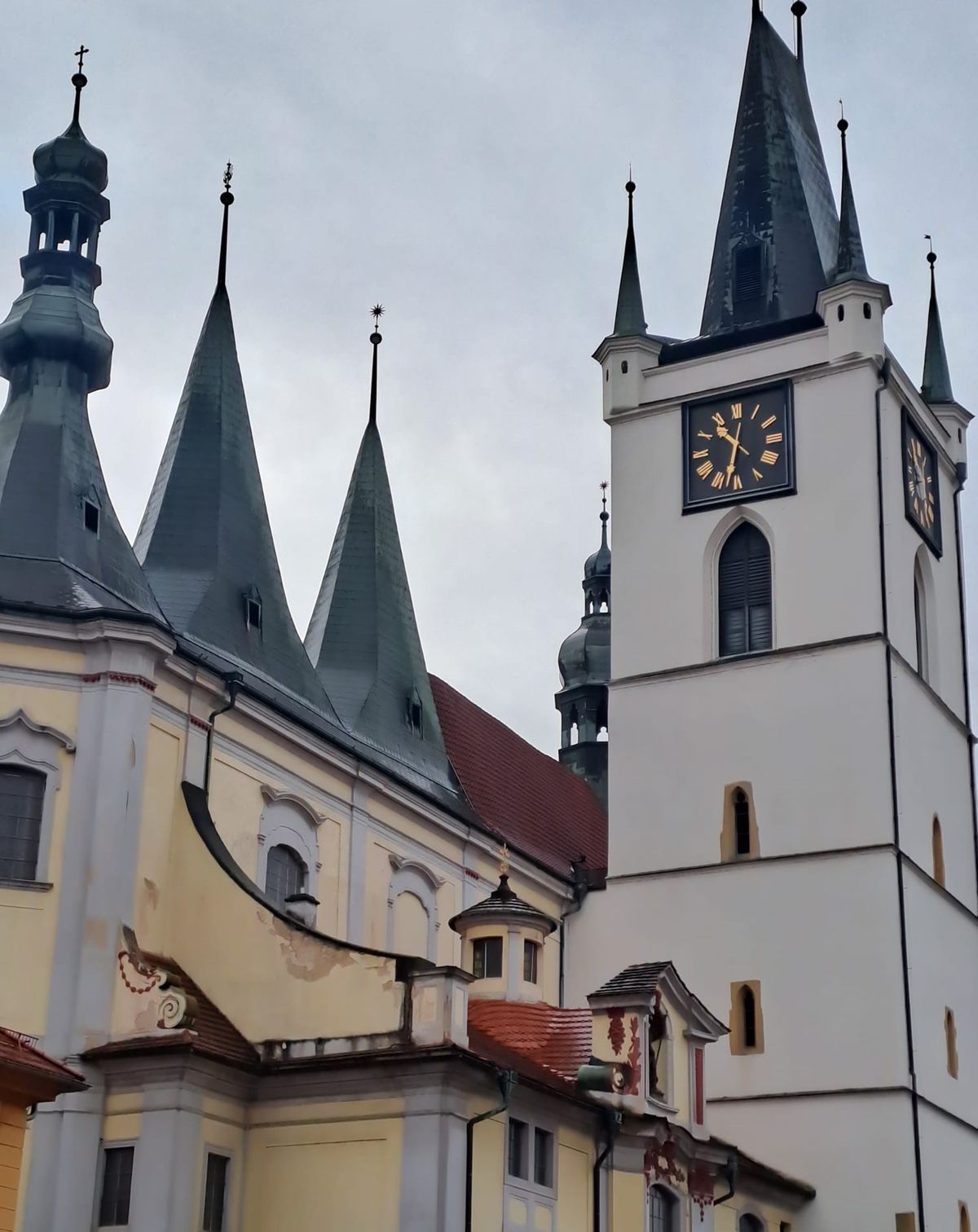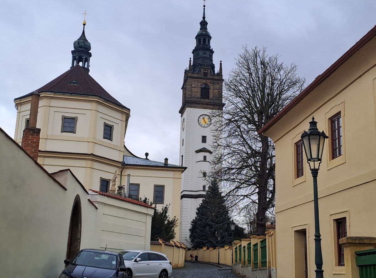 Dlouhou ulicí, která si své jméno plně zaslouží, se blížíme do srdce města – k Mírovému náměstí, ale ještě před ním činíme první zastávku. V boční ulici stojí jeden z mnoha místních kostelů – v tomto konkrétním případě kostel sv. Ludmily. Raně barokní stavbu z roku 1656 si prohlížíme alespoň zvenčí – podobně exteriérově se vzápětí zdravíme s kostelem Zvěstování Panny Marie, barokním dvouvěžovým dílem architekta Octavia Broggia z let 1701-1731.
