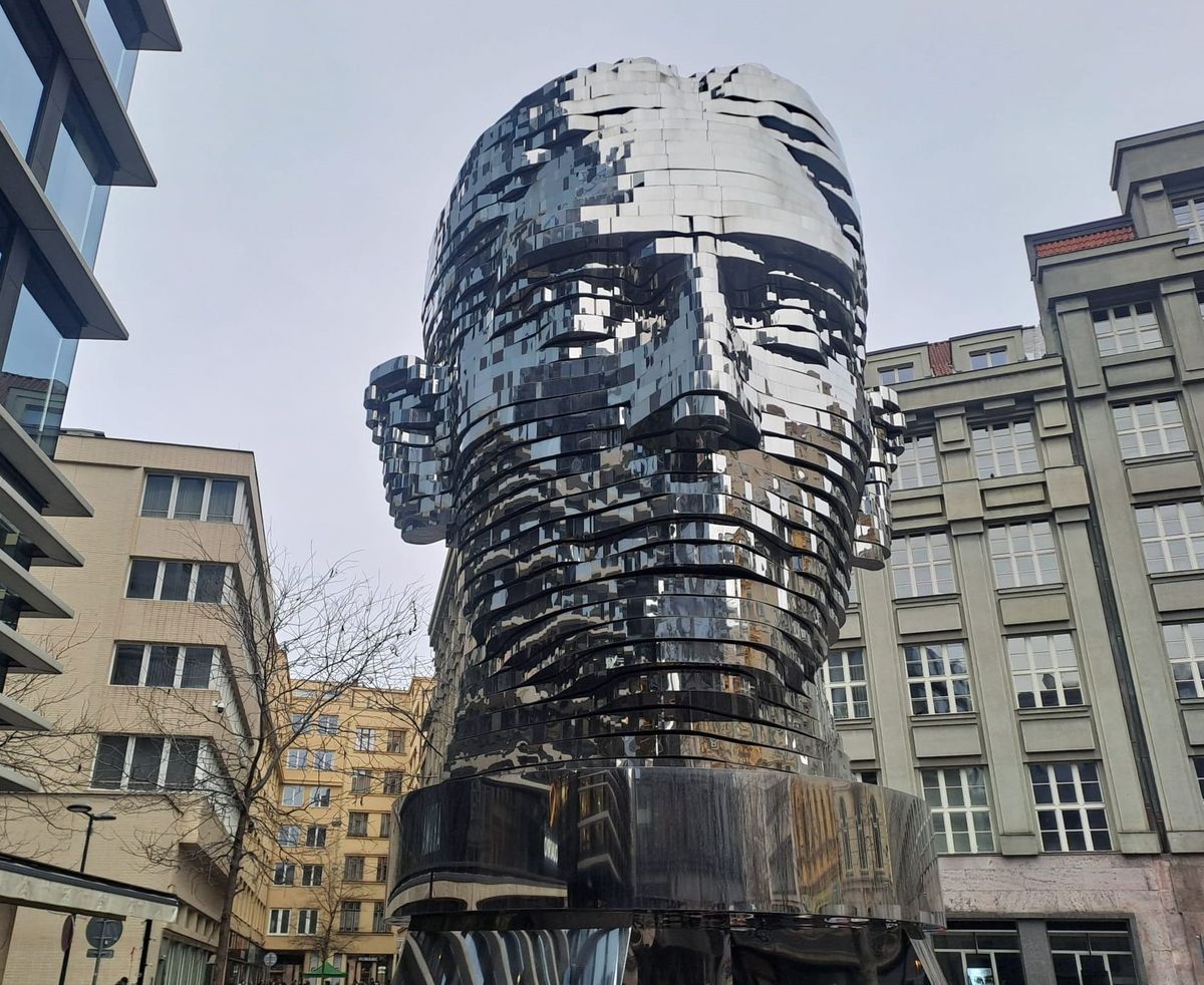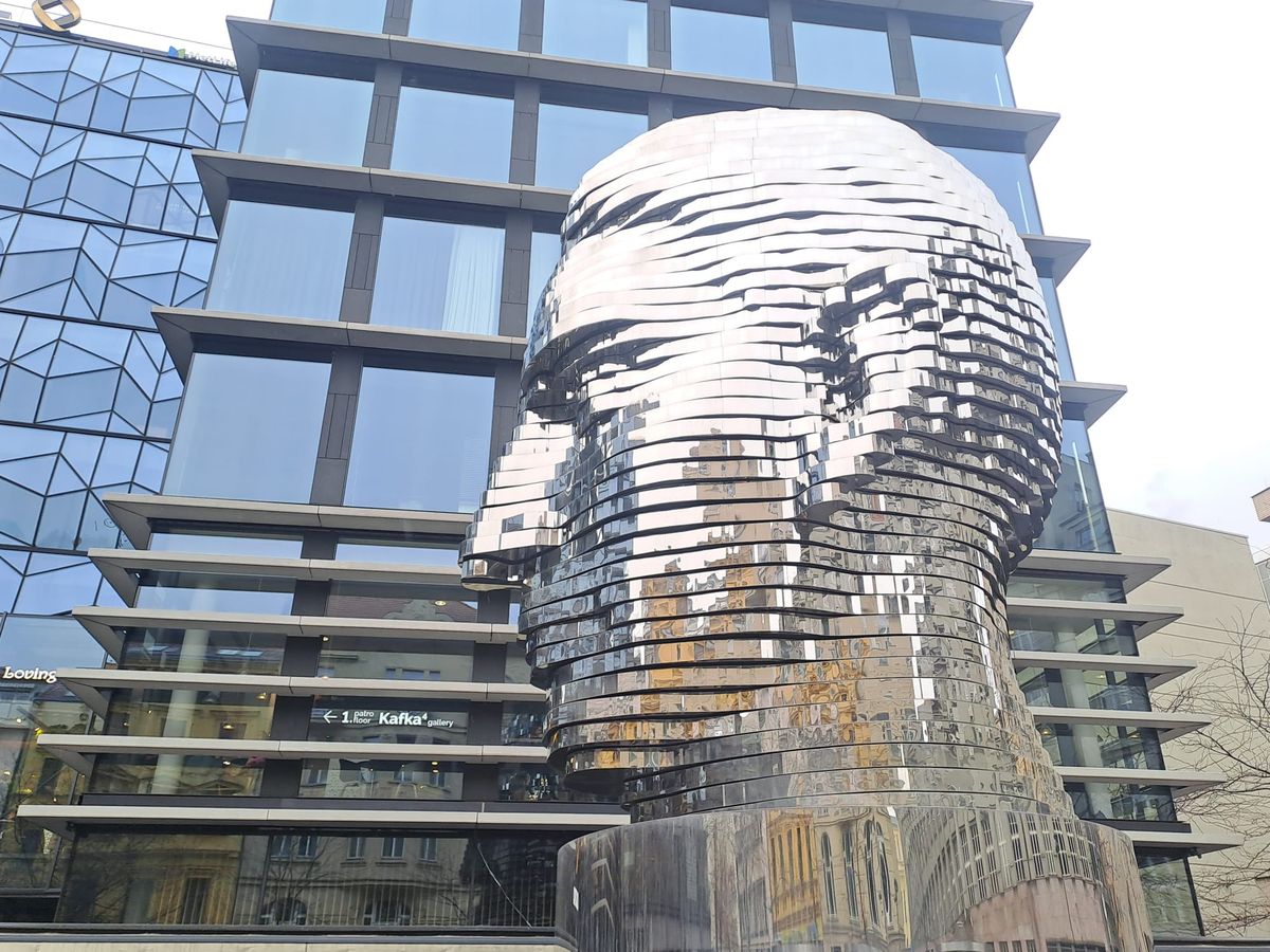 Oním monumentem je pohyblivá Hlava Franze Kafky, mechanická socha Davida Černého z roku 2014. Tvoří ji 42 pohyblivých pater, ta se otáčejí nezávisle na sobě a proměňují tak pozorovaný objekt zájmu. Pohyb má „na svědomí“ mj. 21 motorových modulů, uvnitř díla se nachází kilometr kabelů.