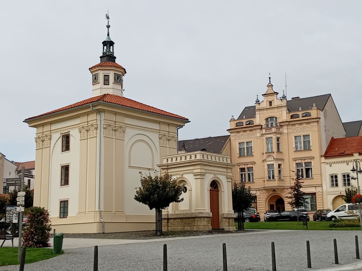 V centru náměstí okamžitě padne do oka nápadná stavba s věžičkou na čtvercovém půdorysu. Jedná se o barokní kapli Rodiny Kristovy. Na svět přišla v roce 1737, dalších pětačtyřicet let sloužila církevním účelům – načež byla zrušena patentem císaře Josefa II. Dnes je místem bohoslužeb Církve československé husitské.