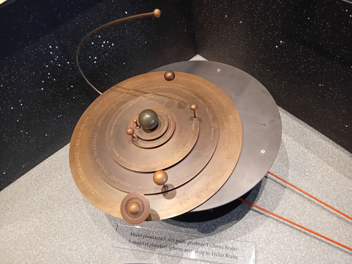 K vidění tu tak jsou mj. dva pohyblivé modely planetárních sfér, názorně předvádějící odlišnosti představ Mikuláše Koperníka a Tycha Braha. Zatímco kanovník z polské Toruně vydal v roce 1543 spis, v němž vyslovil názor, že Země není středem vesmíru, ale pouze jeho jednou z planet obíhajících kolem Slunce, dánský badatel šel na to jinak.