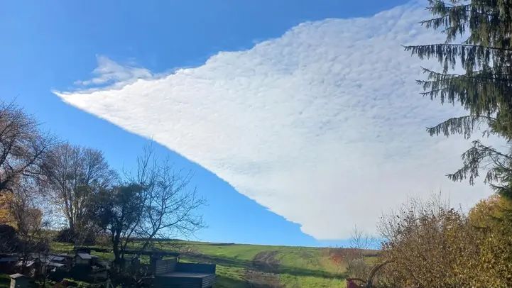 Napříč Polskem se o víkendu se objevovaly také pozoruhodné oválné otvory. Tato oblaka dostala latinský název cavum.