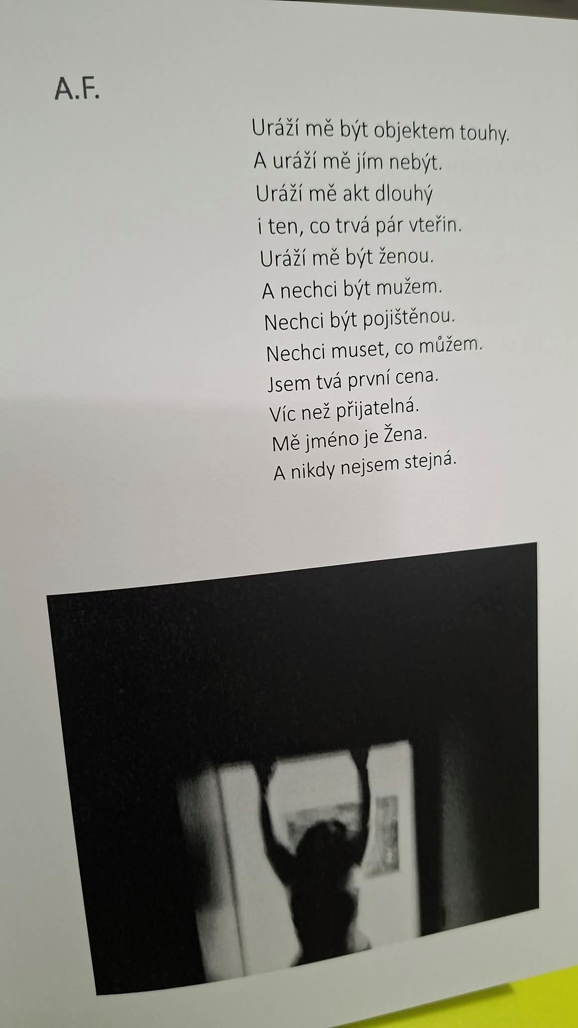 Anna Foster: Večer přiměřených depresí je projekt, kterému moc fandíme, ale aktivními účastníky jsme až teď. Teda teprve budeme. Stejně tak jsme vystupovali třeba Ka Sha Fe, kde se také konají literární večery, ale my je neorganizujeme. My jen občas takhle exhibujeme. Ovšem není to prvoplán. Je to snaha dostat poezii do veřejného prostoru. Protože tam také patří. A když za námi potom diváci přijdou a řeknou, že se fakt bavili, je úkol splněn. Primárně nám nejde o to, zda si následně pořídí naši knížku. Jde o navázání kontaktu, o představení poezie jako živého útvaru.