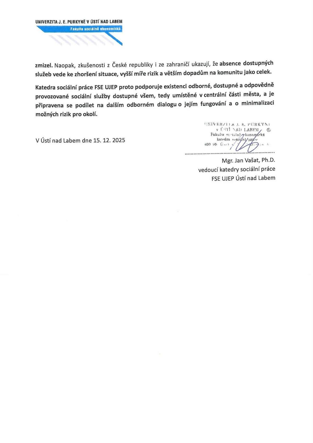 „Rozhodnutí ústeckých zastupitelů, kteří bez adekvátního odborného vzdělání smetli ze stolu doporučení expertů, není vítězstvím pro občany, ale diagnózou hluboké adiktologické křeče. Argumenty ředitelky K-centra, která v souladu s vládní strategií i mezinárodními metodikami harm reduction upozorňuje na fatální rizika ztráty kontaktu s klienty, zůstaly nevyslyšeny. Místo aby město využilo doložitelná data o tom, že funkční nízkoprahová služba v centru výskytu uživatelů snižuje kriminalitu a brání šíření infekcí, zvolilo cestu populistického vytěsňování. Politika, která vědomě rezignuje na odbornost a funkční nástroje prevence, totiž problém neodstraňuje – pouze jej činí neviditelným pro oko voliče, ale o to nebezpečnějším pro veřejné zdraví. Pokud se v komunální politice nevrátíme k rozhodování založenému na faktech (Evidence-Based Policy) a přestaneme ignorovat varovný hlas těch, kteří jsou v první linii, budeme i nadále svědky toho, jak ideologický boj proti sociálním službám paradoxně plní parky a hřiště těmi samými stříkačkami, které měly skončit v bezpečných kontejnerech odborných pracovišť. Ústí nad Labem tak nyní nečelí pouze drogovému problému, ale především krizi kompetencí těch, kteří mají město spravovat.“