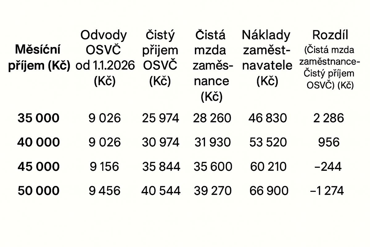 Tabulka bystrému čtenáři napoví, že vlastně bude minimální rozdíl mezi tím, kolik zaplatí na dani někdo, kdo na švarc vyfakturuje 35, 40,45 nebo 50 tisíc. Rozdíl to ale hodně velký je pro toho, kdo za ty peníze pracuje. Musí řešit daňové přiznání. To si sice mohou zjednodušit paušální daní, ale ta bude od roku 2026 v té nejnižší sazbě 10 tisíc. Hlavně ale z těch peněz musí nějak vyžít, což třeba v Praze v některých případech jde dost těžce, když tu nájem bytu 1+kk stojí třeba 20 tisíc měsíčně.