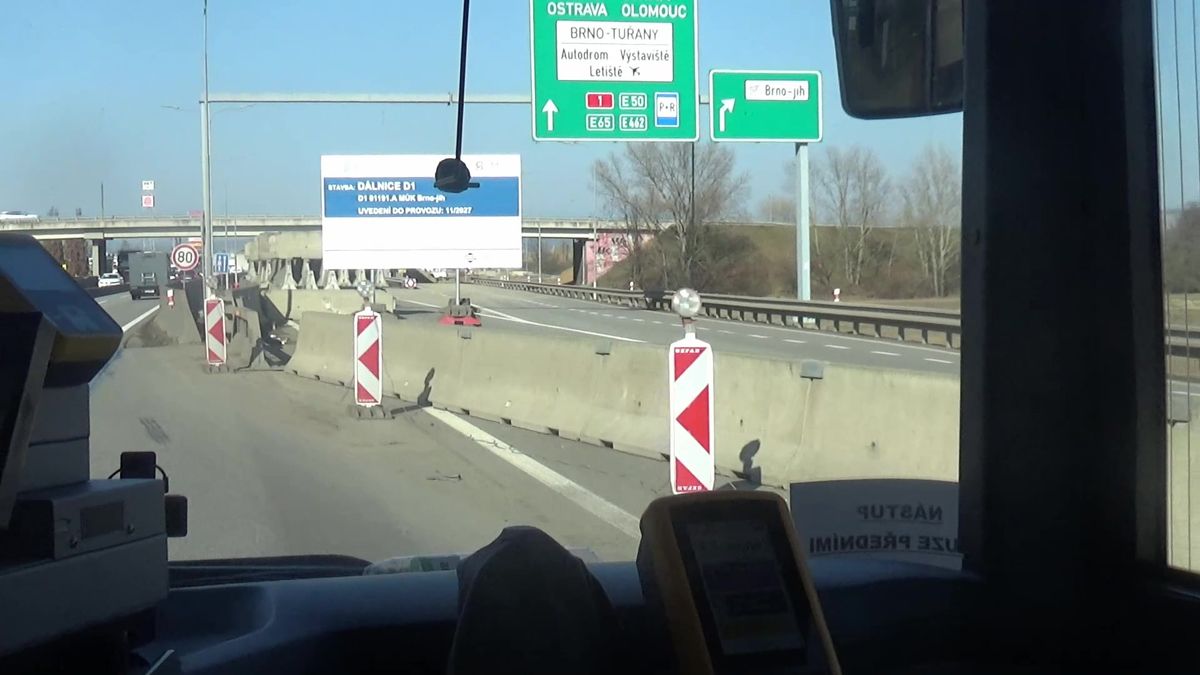 Budování dálniční křižovatky D1 a D2 pohledem z dálnice.
