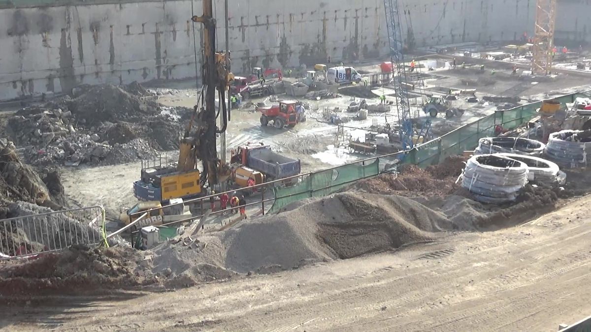 Pořádná díra po zbouraném OC Tesco a budování budoucích šesti nových objektů v Brně na Dornychu aktuálně.