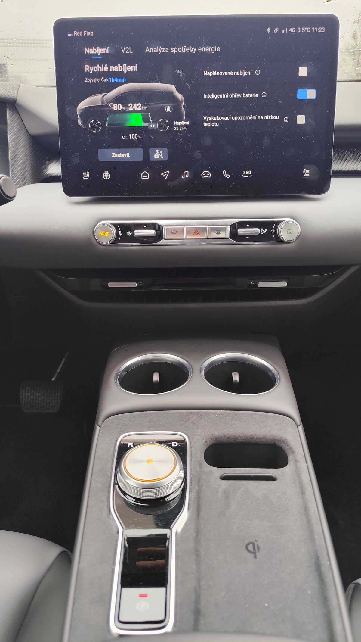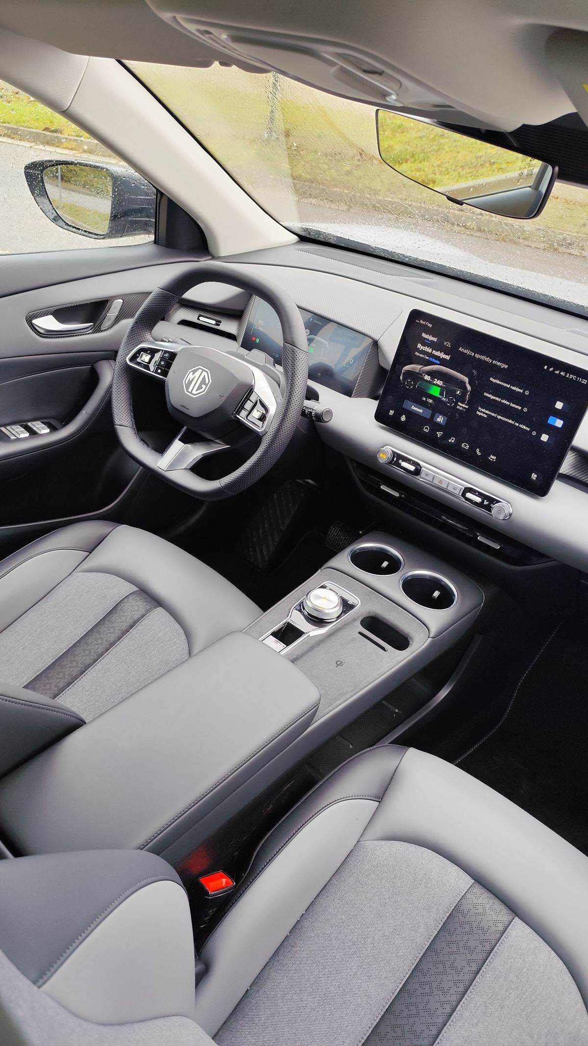 Jak u exteriéru, tak i tady platí, že MGS5 ničím pozornost vyloženě nepřitahuje. Hlavním prvkem palubní desky je 12,8" velký HD displej infotainmentu. Na něm se bude odehrávat vše podstatné. Ale klid - klasická tlačítka nevymřela a tak ty nejdůležitější funkce naleznete pod obrazovkou uprostřed panelu, nebo na volantu. Kromě povedeného, ale na ovládání dosti tuhého kulatého voliče převodovky interiér až tak nenadchne. Klasické rozložení, víceméně standardní materiály.