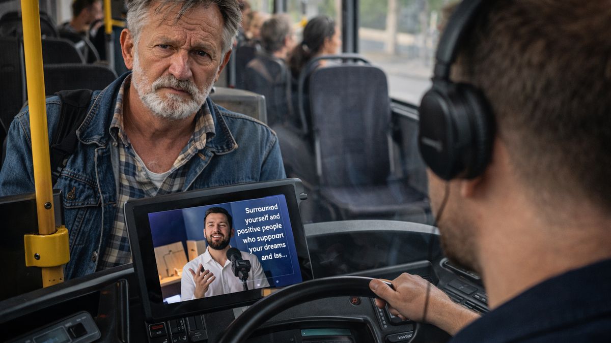 Dneska nastoupím do autobusu a připadám si jak v obýváku cizího člověka. Řidič si pouští podcast. Nahlas. Bez sluchátek. Bez studu. Bez ohledu na to, že veze čtyřicet lidí, kteří si neobjednali žádný audio program.