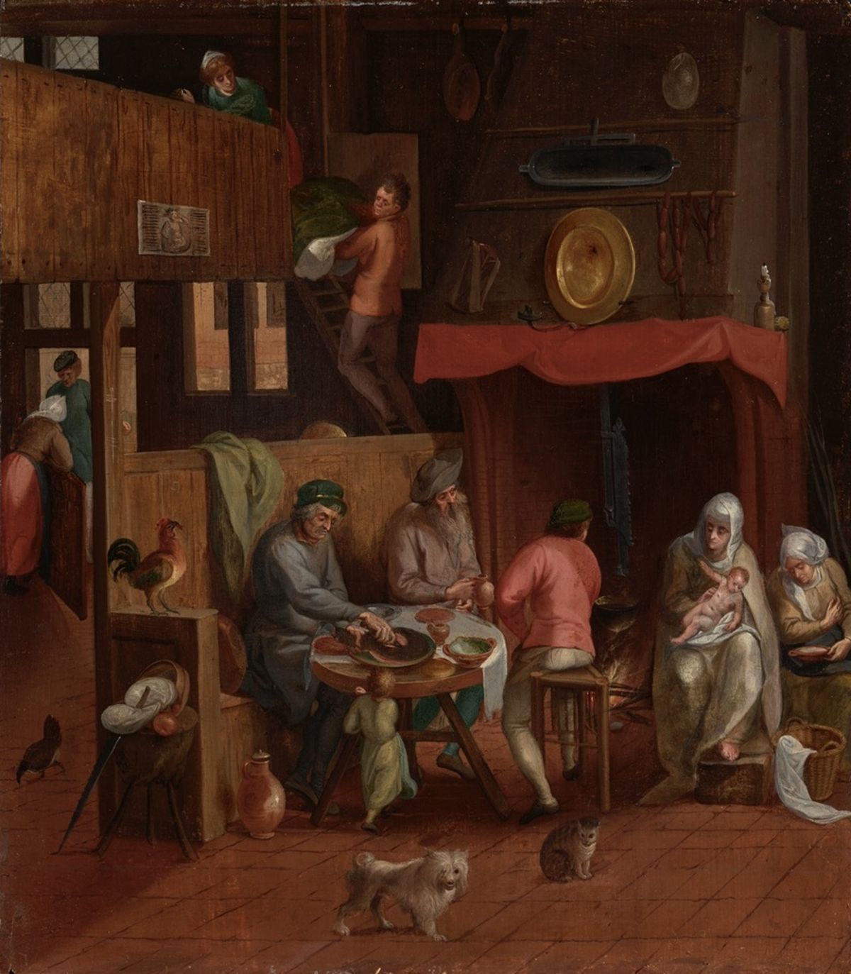 Gillis Mostaert: Scéna v nevěstinci se sv. Rodinou na útěku do Egypta, konec 70. let 16. století