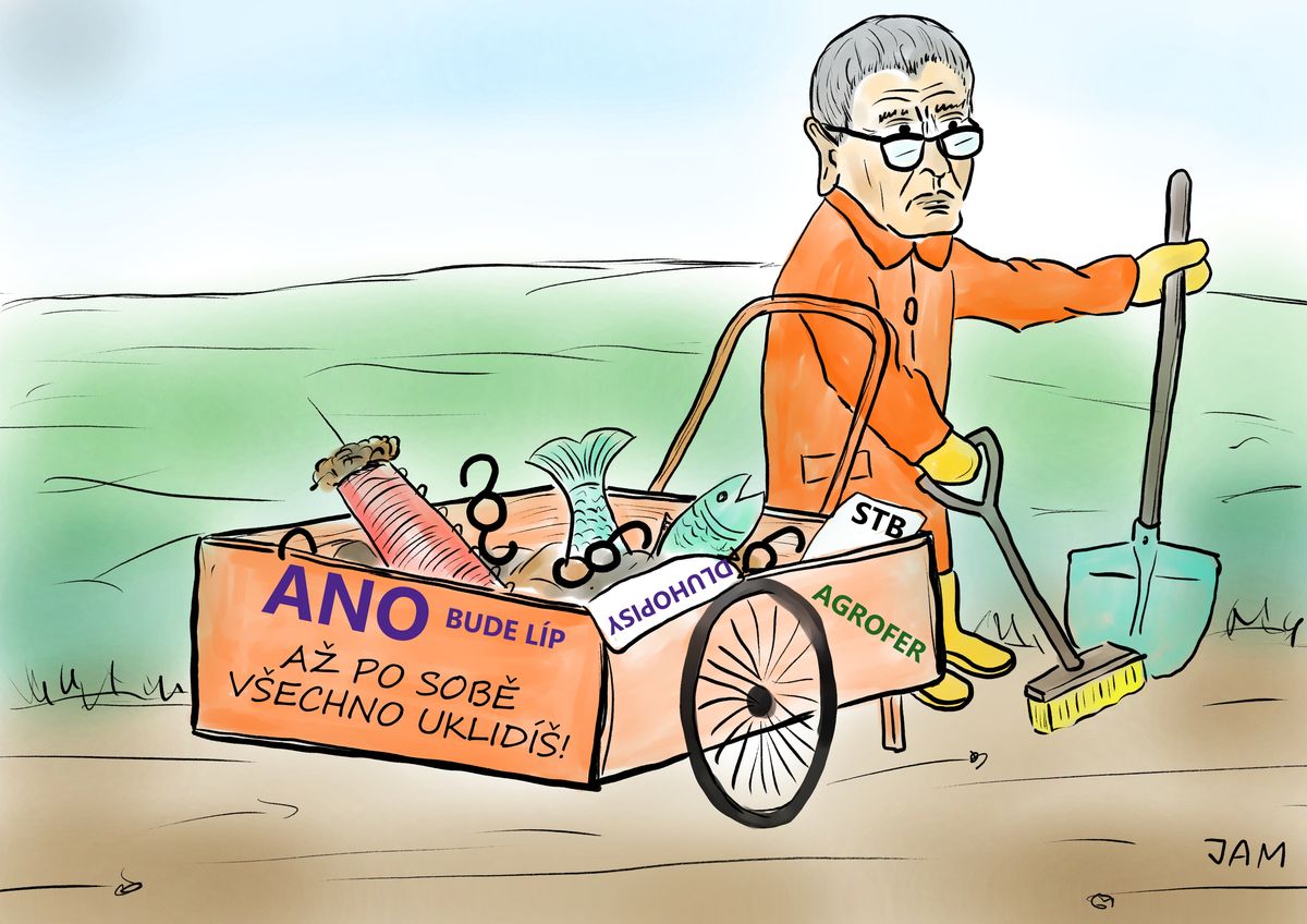 Kreslený vtip: Babiš začal uklízet …