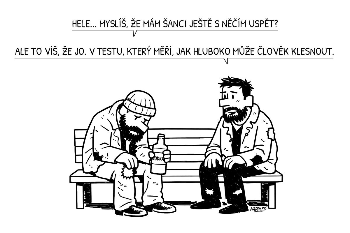 Bezdomovec na dně a upřímnost kámoše