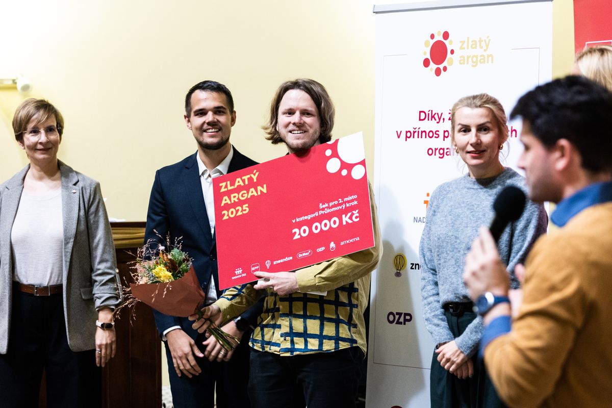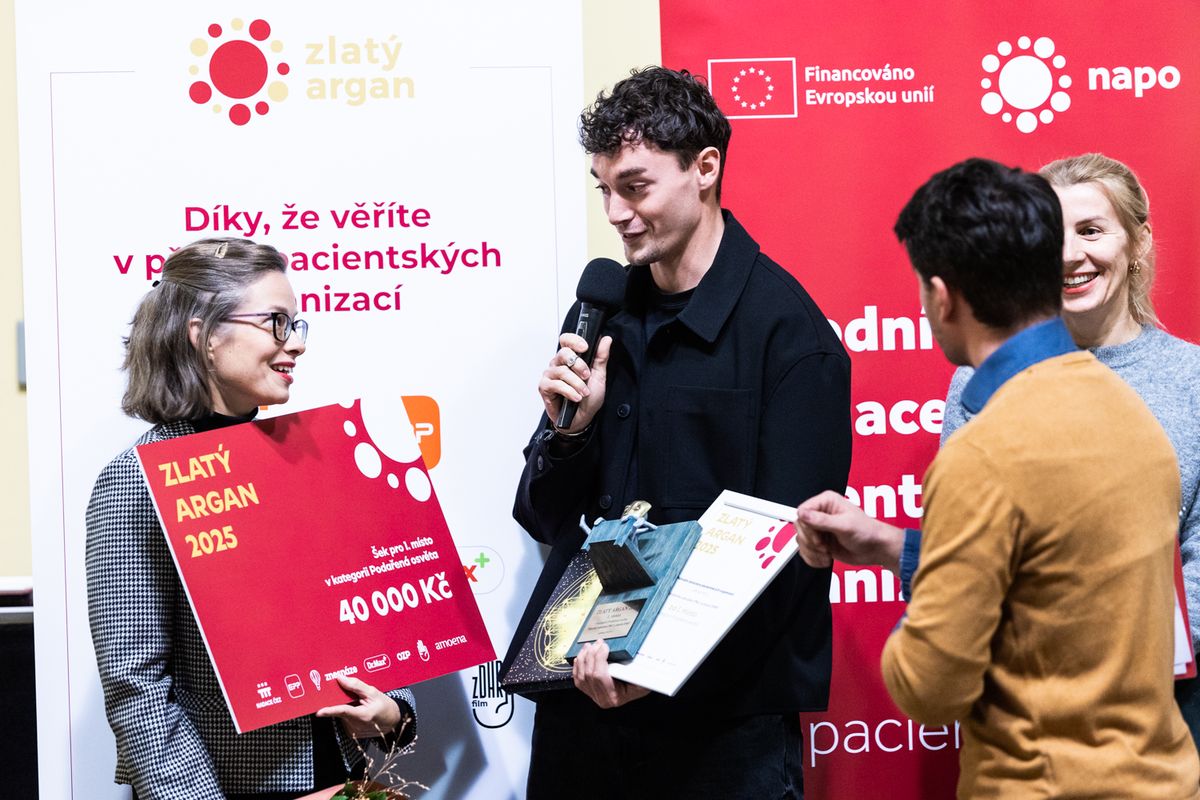 Filip Rojík z pacientské organizace Neticho přebírá cenu ZLatý Argan za 2. místo v kategorii Průlomový krok.