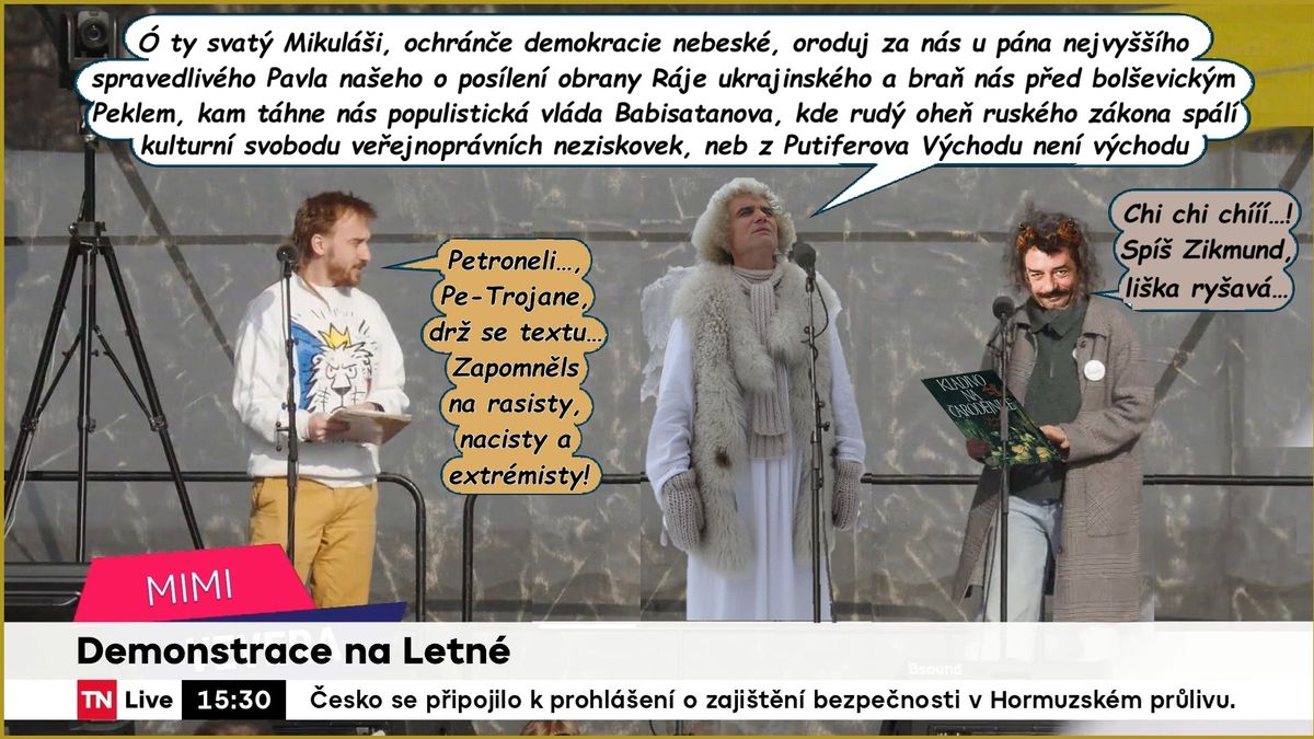 Polepšený Petronel Ivan Trojan předvedl další výborný herecký výkon a skvěle se vžil do úlohy posla nebes za spásu Česka. Z prken pódia jeviště na Letné burcoval lid, pateticky kázal dobro a plamenně dštil i oheň a síru proti vládě, což trochu Matla popletl, když horlivě sehrál i roli kolegy Uriáše.