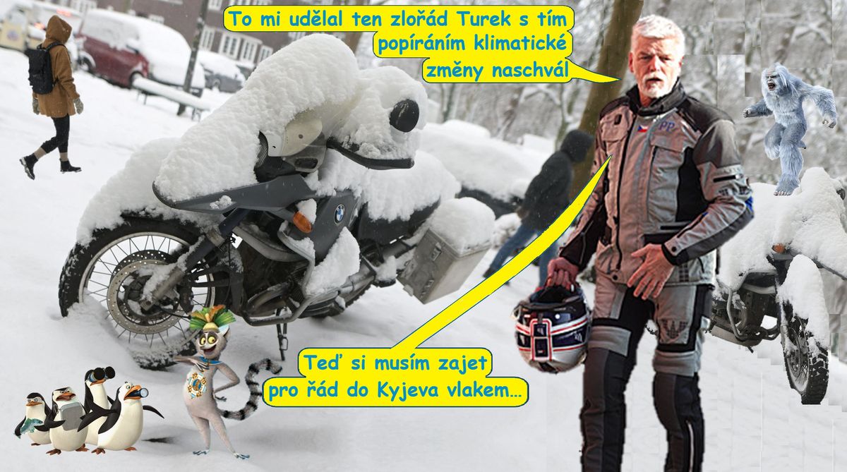 Globálnímu oteplování navzdory uhodily v celé Evropě třeskuté mrazy. Prezident Pavel se tak nemůže věnovat své zálibě jízdy na motorce. Aspoň že dostal ten Řád knížete Jaroslava Moudrého a protože moudřejší ustoupí, mohl by jmenovat Turka ministrem.