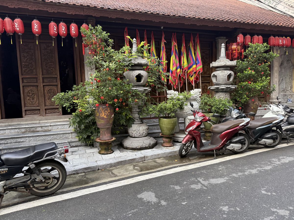 Tenhle způsob vnímání se mi vybavil znovu, když jsem vystoupil na ulici ve vietnamské Hanoji. Ačkoli jsem podobnou energii zažíval v Číně už nesčetněkrát (zvlášť v moderním, uhlazeném a sebevědomém Pekingu, kde je chaos vždycky trochu organizovanější a přikrytý vrstvou současné prosperity), Hanoj působila jinak. Živěji, syrověji, spontánněji. Proudy motorek se tu valí jako nekonečná řeka, klaksony se slévají do jednolitého rytmu, vůně jídla, prachu, deště i benzinu (a ano, i odpadu) se mísí do směsi, kterou mozek sotva stíhá pojmout. A stejně jako v Pekingu stačí udělat pár kroků stranou do boční uličky a ocitnout se u vchodu do pagody či svatyně, kde se svět náhle promění: hluk zmizí, čas se zpomalí a prostor zaplní ticho, tlumené světlo a jemný pach kadidla.