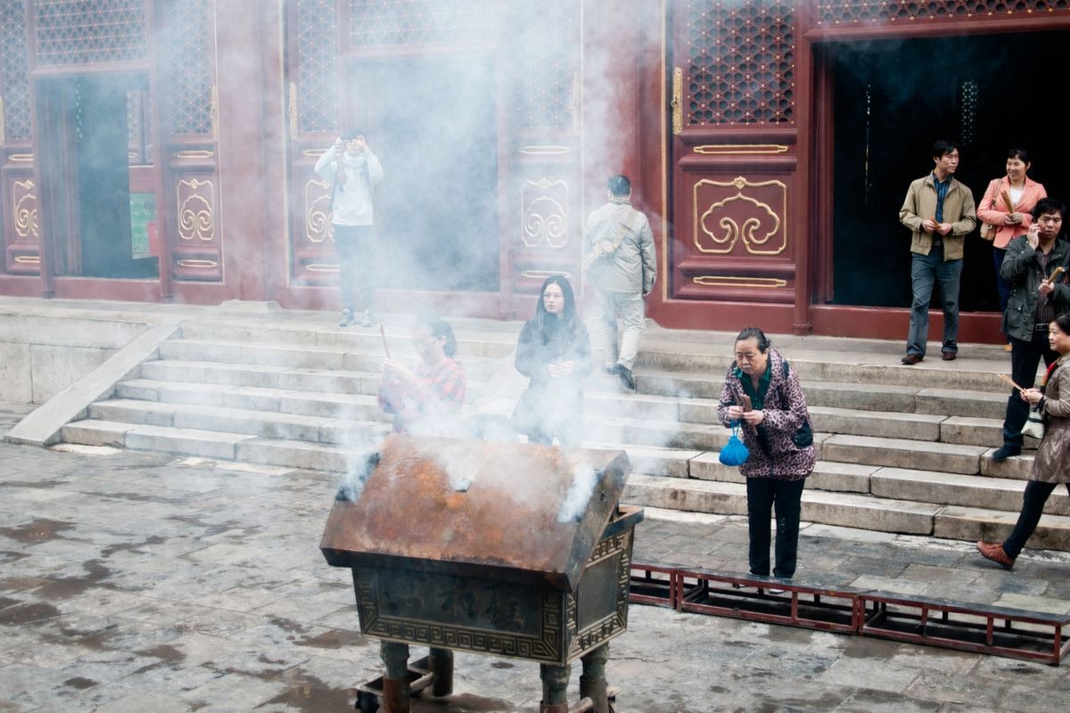 Běžný rituál na jednom z mnoha míst v Pekingu