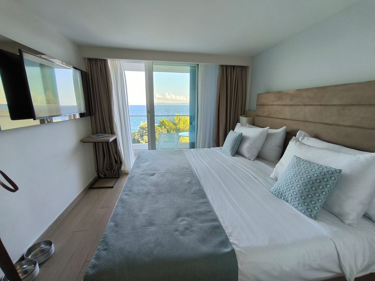 Pokoj s krásným výhledem na moře v hotelu Girandella od Valamaru na Rabacu.
