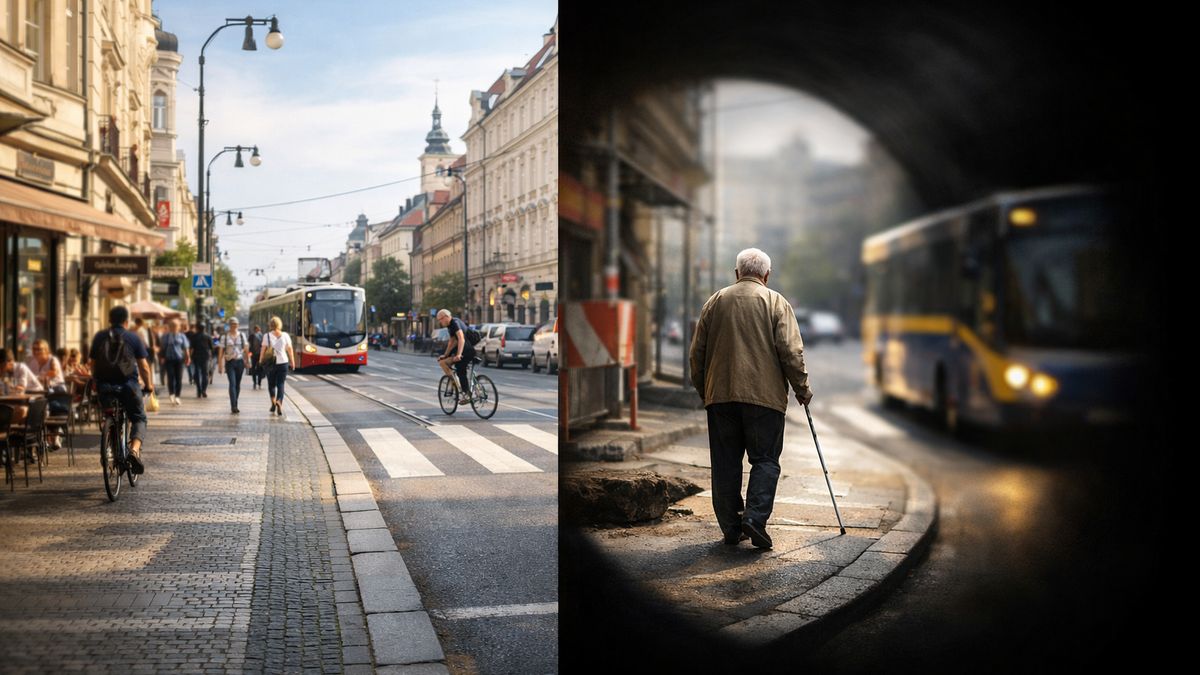 Schod. Kolo opřené o zeď. Stavební zábrana. Díra v chodníku… stačí jedna.