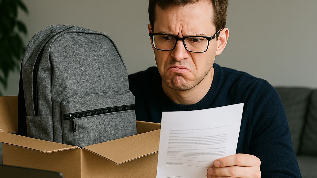 Já chci rozhodně nový kus. Ráno objednávám, večer je v boxu. Skvělý, mám radost. Ale proč na sobě nemá visačky a není lépe zabalený? Doma to při prohledání kapes zjistím. V kapse protokol o vrácení a na něm všechny citlivé údaje předchozího zákazníka zo Slovenska. Jméno, e-mail, mohl bych mu klidně i zavolat. Jsem vážně děsně naštvaný. Dlouho jsem v nabídce vybíral batoh, který splňoval všechno, co jsem potřeboval. A teď obnošené zboží. Díky, nechci.
