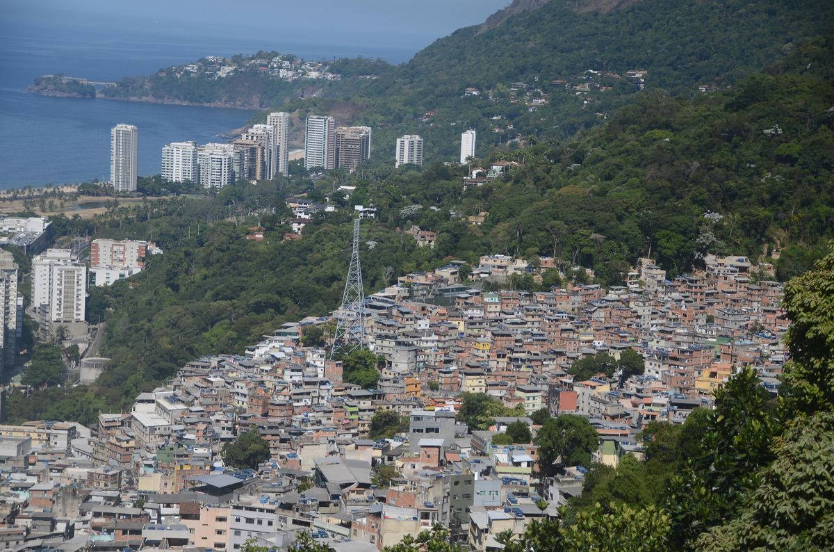 Největší favelou je Rocinha, kde žije až milion lidí v kontrastu s luxusním pětihvězdičkovým hotelem a soukromým golfovým hřištěm v jeho sousedství.