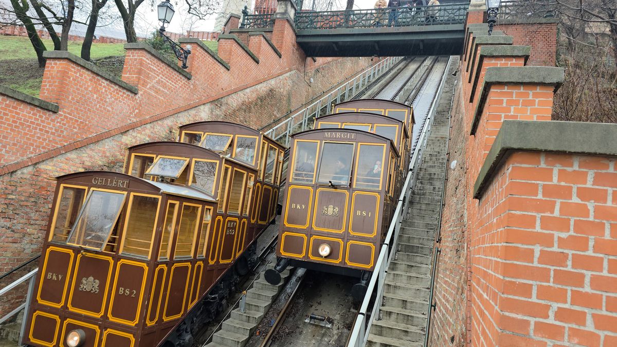 Gellért a Margit - dvě kabiny u historické lanovky v Budapešti
