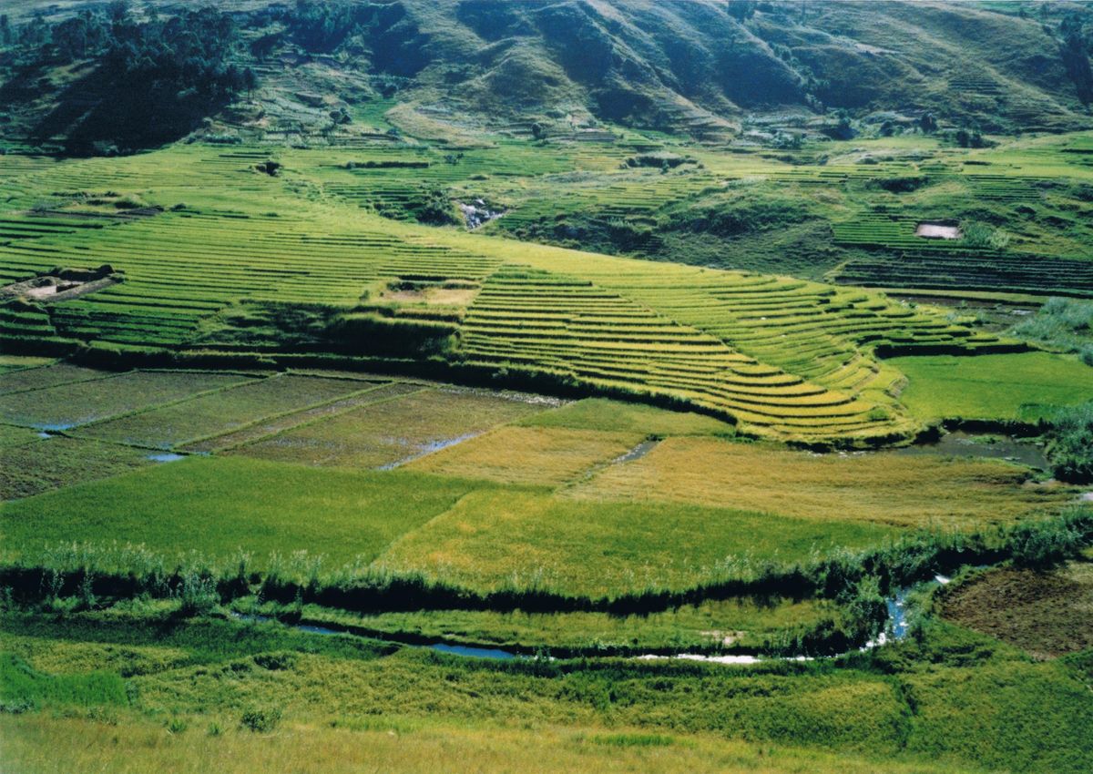 Rýžová pole, rýže je hlavní plodinou k obživě