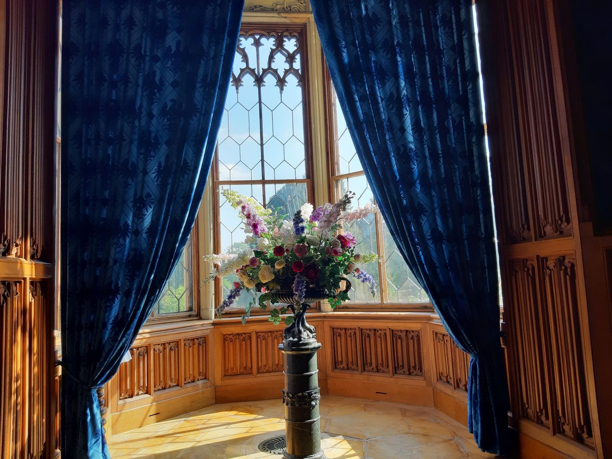 Reprezentační sály zámku Lednice s bohatou květinovou výzdobou