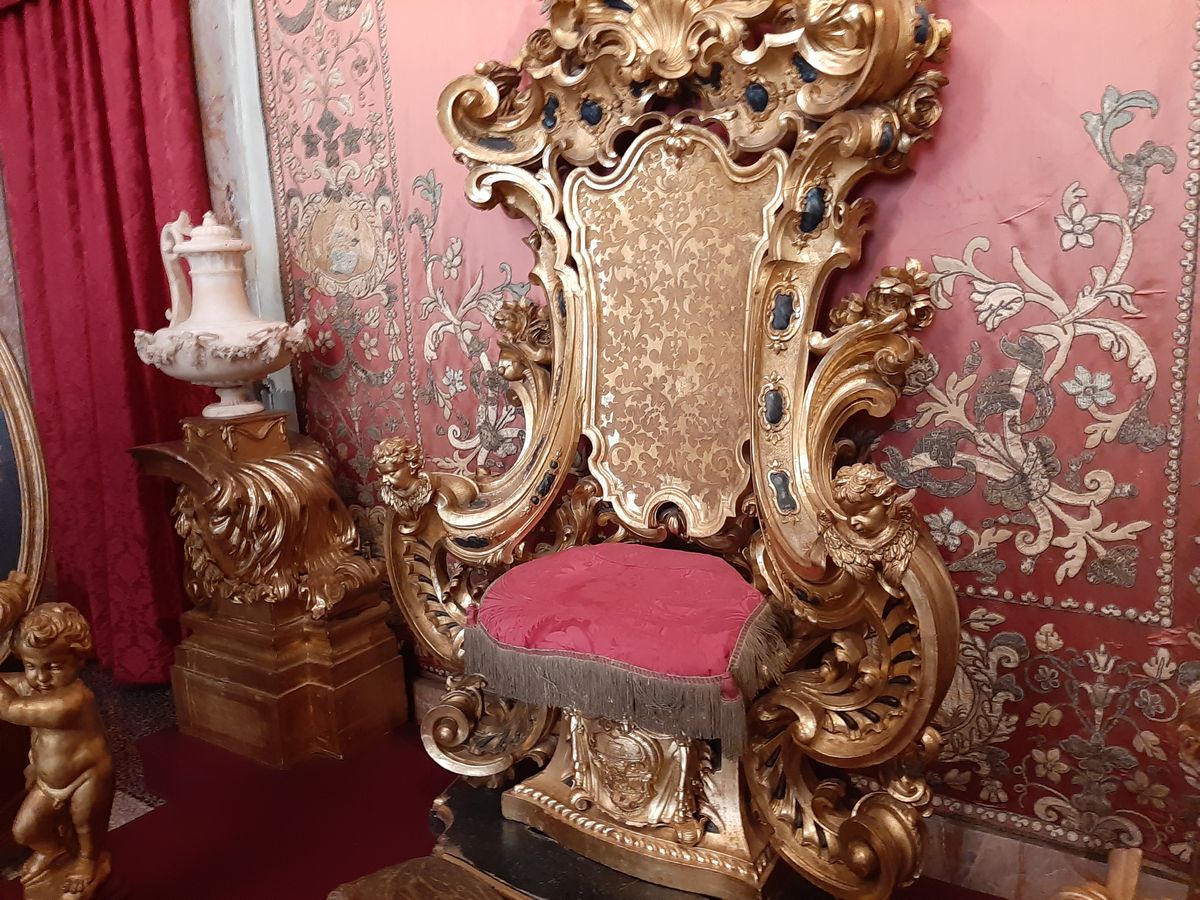 Součástí prohlídky ostrova byla samozřejmě návštěva paláce, který má bohatě zdobené sály, nástěnné malby, vzácný nábytek a další репозитář nebo třeba lustry z ostrova Murano.