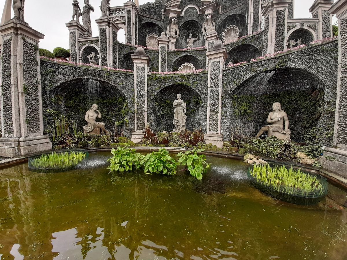 Sochy a fontány v zahradách na ostrově Isola Bella