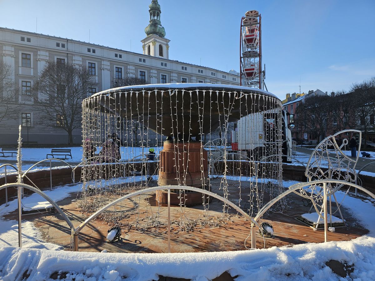Koule před Hláskou je také oděna do vánočních ozdob, vánoční atmosféra na vás v Opavě dýchá opravdu na každém kroku.