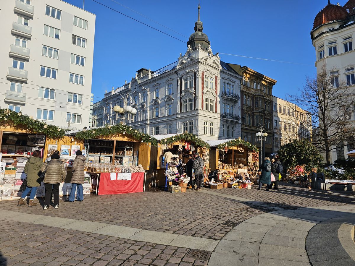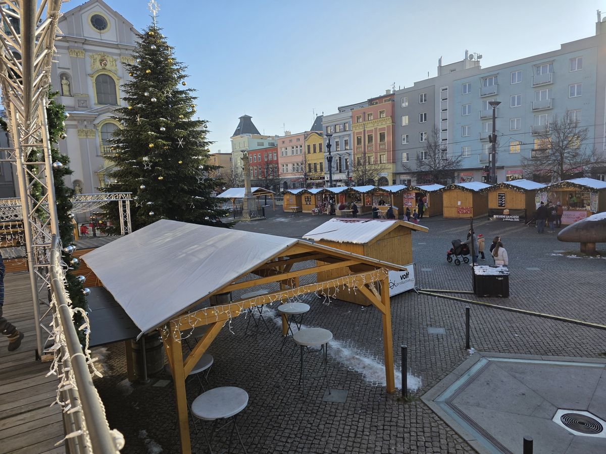 Po vyzdobené Ostrožné ulici jsme se pak vydali k Hornímu náměstí, kde je první část vánočních trhů.