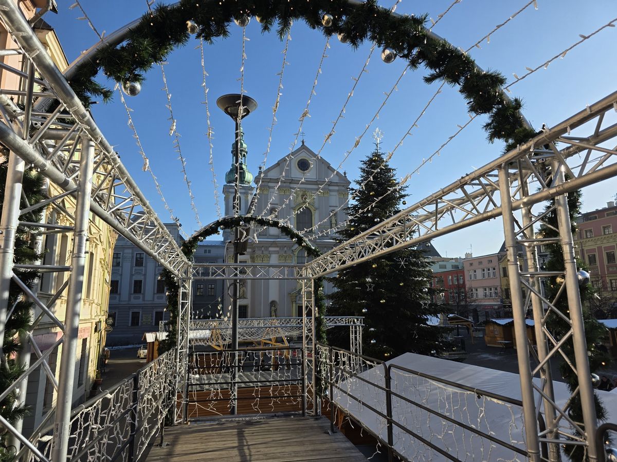 Vyhlídka vánočně nazdobená s výhledem na Dolní náměstí