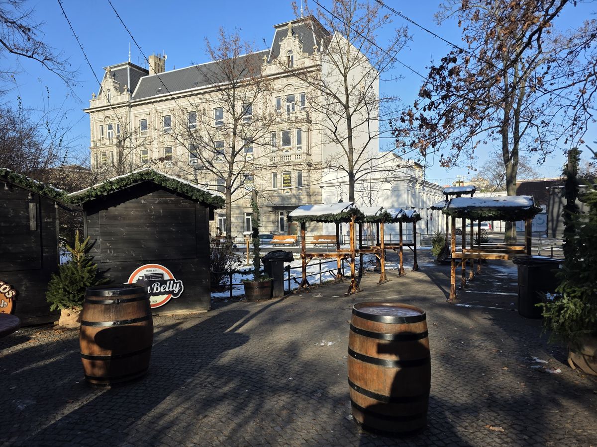 Stánky s občerstvením a punčem v parku před Obecním domem