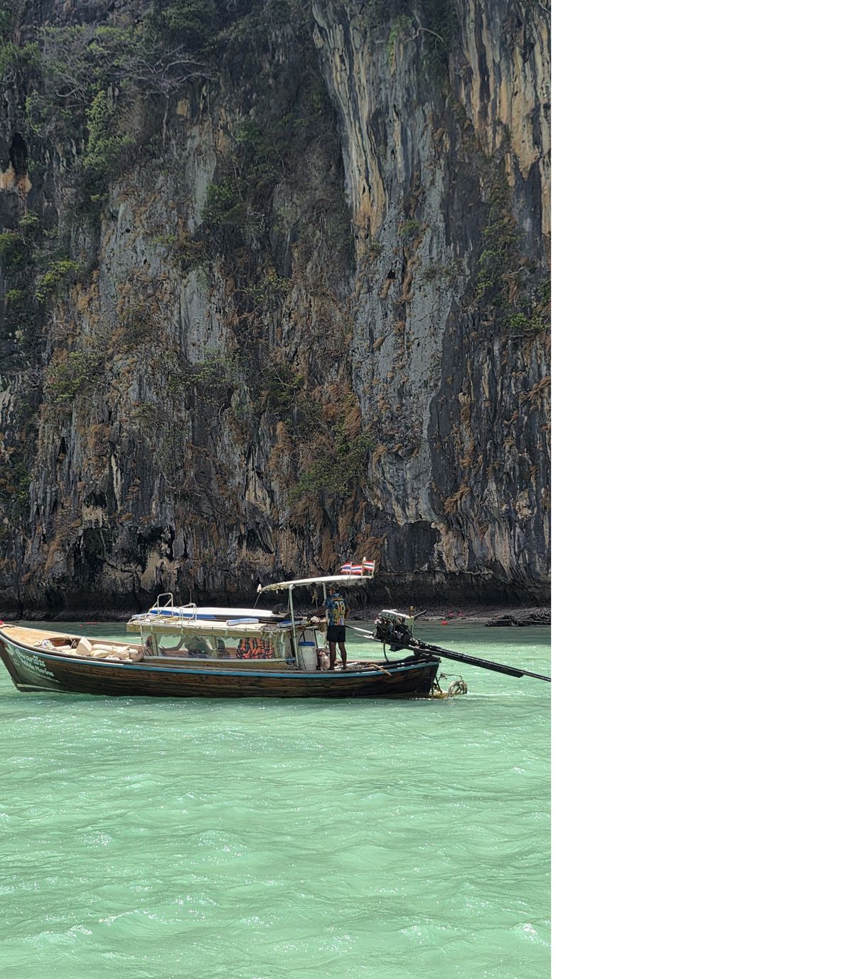 Na jeden výlet rychlolodí po okolních ostrůvcích jsme se také vydali. Naší první zastávkou byl ostrůvek Khai Island, kde jsme byli brzy ráno, a tak jsme si návštěvu užili bez davu turistů. Následovaly slavné ostrovy Phi Phi Islands, které tvoří hlavně vápencové skály, a pláže tak mají téměř bílý písek a náš výlet jsme zakončili v národním parku Maya Bay, kde však už byla hlava na hlavě.