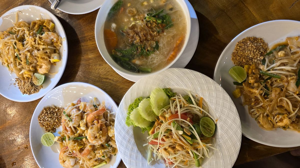Obědy a večeře jsme si dopřávali v místních restauracích, kde jsme zkoušeli různé thajské speciality s nudlemi, rýží a mořskými plody, zejména krevety připravované na nejrůznější způsoby. Thajskou kuchyni milujeme, ostrá jídla nám nevadí a rádi poznáváme nové chutě.
