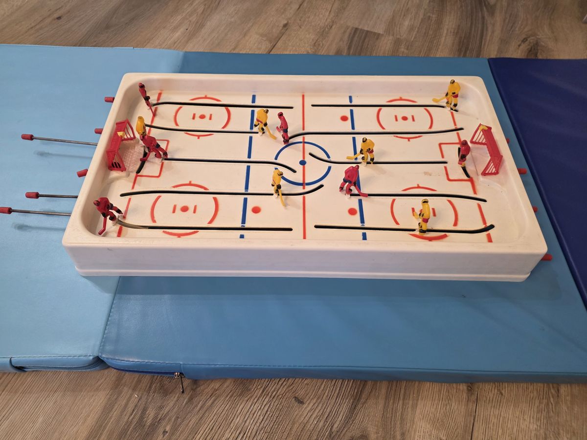 Zmiňovaný hokej není žádná „Čína“, ale ještě poctivá československá práce. Krabici s nápisem „Hockey“, které v manuálu říká puku „touš“, vyrobil Chemoplast Brno, a tato hra vydržela bezmála padesát let bez poškození. Pouze brankář červeného týmu má poškozený mechanismus pro pohyb v brankovišti, jinak však všechno funguje. Drží hřiště, táhla, branky a podařilo se najít i puk.