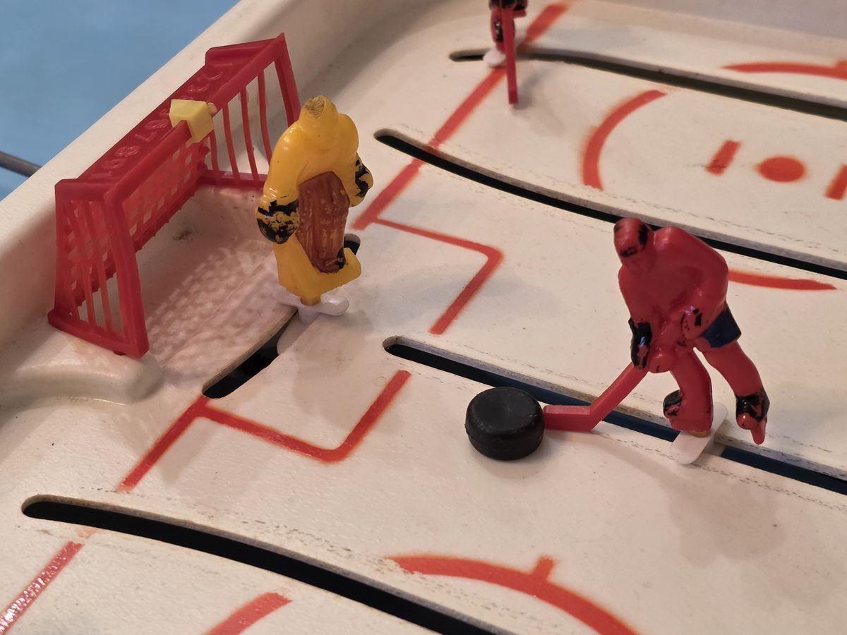 Když jsem krabici našel ve skříni, byla na ní centimetrová vrstva prachu. Děti se na hokej seběhly a půl dne o nich nebylo ani slyšet. I doteď si občas zahrajeme, já tedy hraju za červeného, jehož brankář je na tom hodně špatně, ale děti to baví. A to je to nejdůležitější.