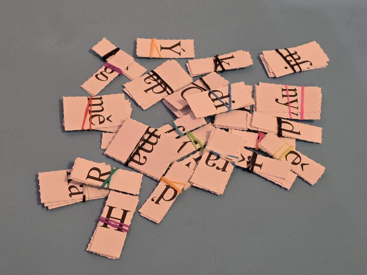 Musely se nejprve vytrhat a posléze naskládat do desek, ale netušil jsem, jaký je správný postup. Zda dát písmena podle abecedy, nebo podle toho, jak byla vytištěná.