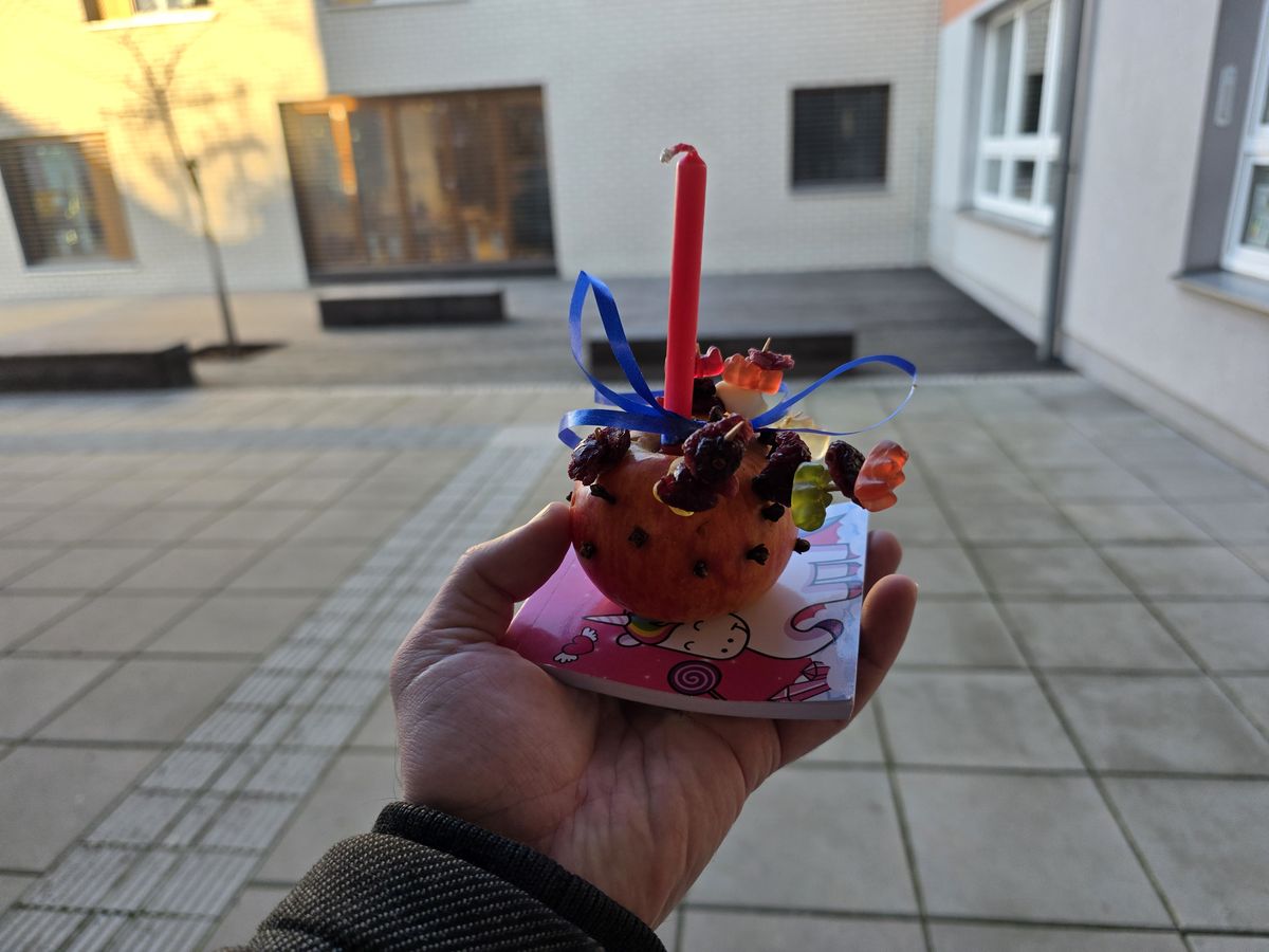 Těsně než dcera onemocněla, vytvořila si vánoční svícen z jablíčka, který si zapálíme na Štědrý den.