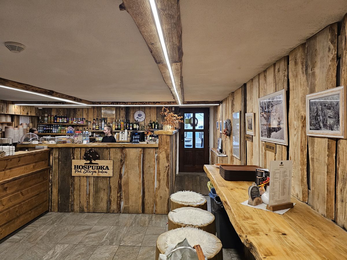 Posilnili jsme se valašskou kyselicou, ale v nabídce byl i borůvkový knedlík, hot dog, halušky, bramboráčky a další dobroty. Dřevěné špalky a posezení z masivního dřeva v kombinaci s bělavou kožešinkou a pěkná výzdoba horského hotelu umocňují příjemnou atmosféru tohoto místa.