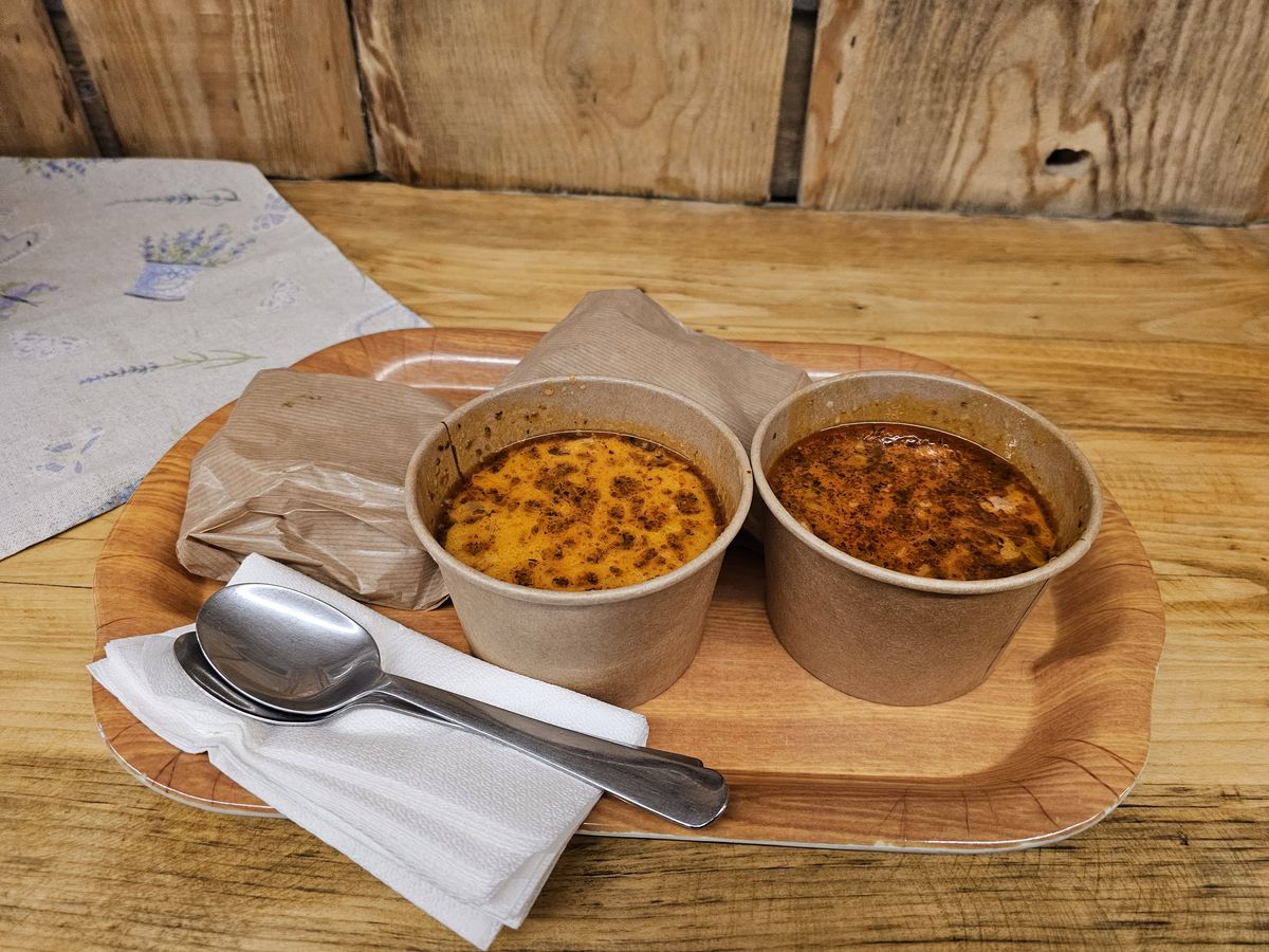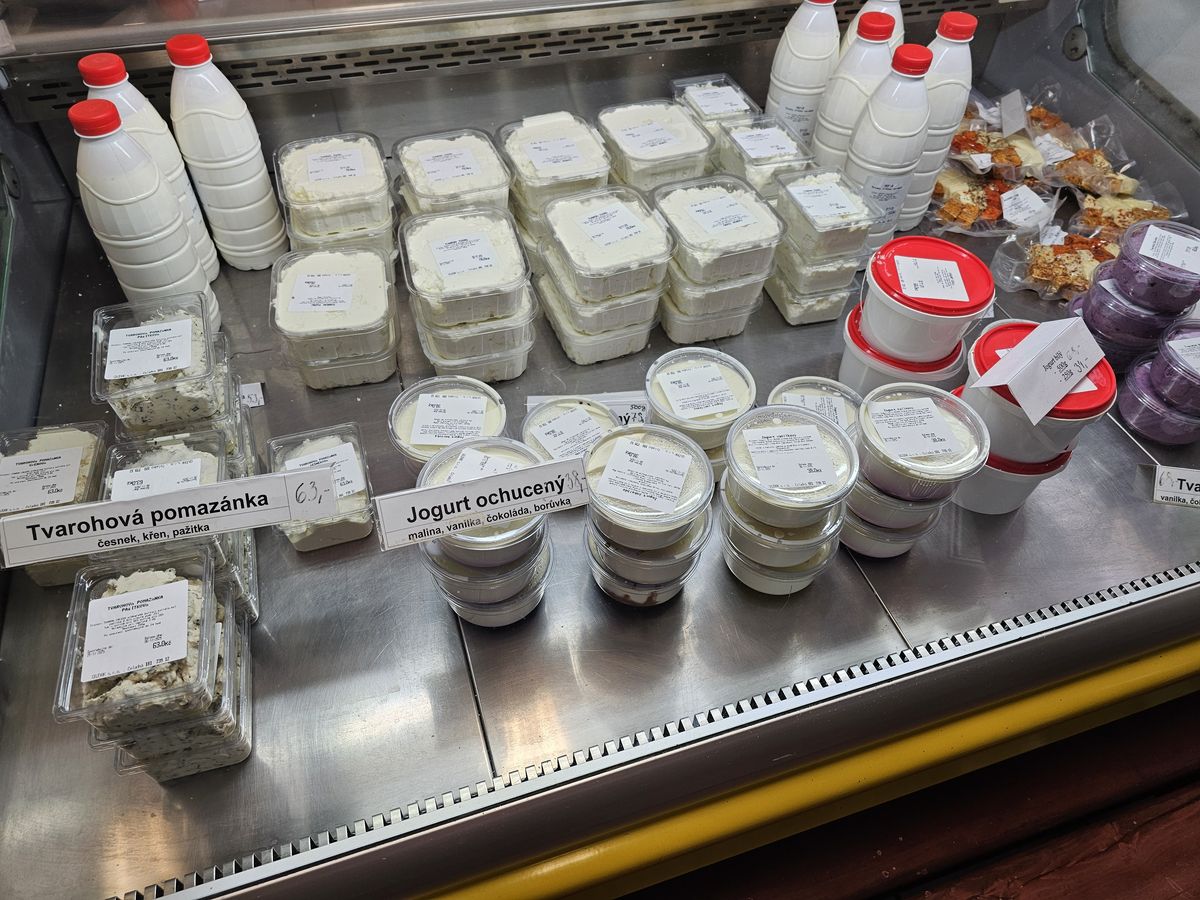 V místním obchůdku prodávají i svou domácí zmrzlinu v kelímku, tvaroh, podmáslí, sýry a jogurty. V létě prodávají i točenou zmrzlinu. Koupili jsme si nějaké produkty domů, a i když nemám jogurty moc rád, na tyto nedám dopustit – plná smetanová chuť, co potěší všechny chuťové pohárky. Například tento domácí jogurt nás vyšel na 38 Kč za 250 g, k výběru bylo více příchutí, nejlepší byl čokoládový.