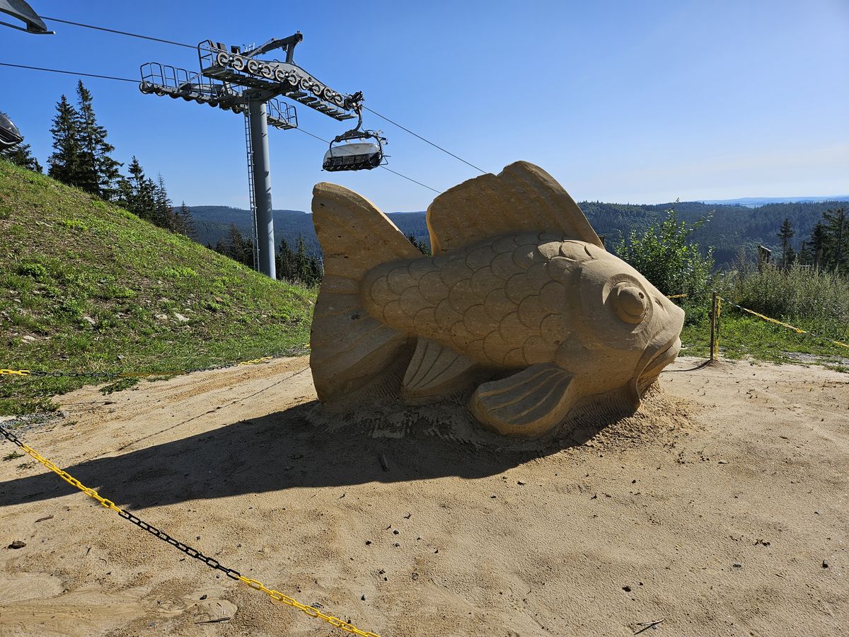 Socha vedle výstupní části lanovky na Kopřivné