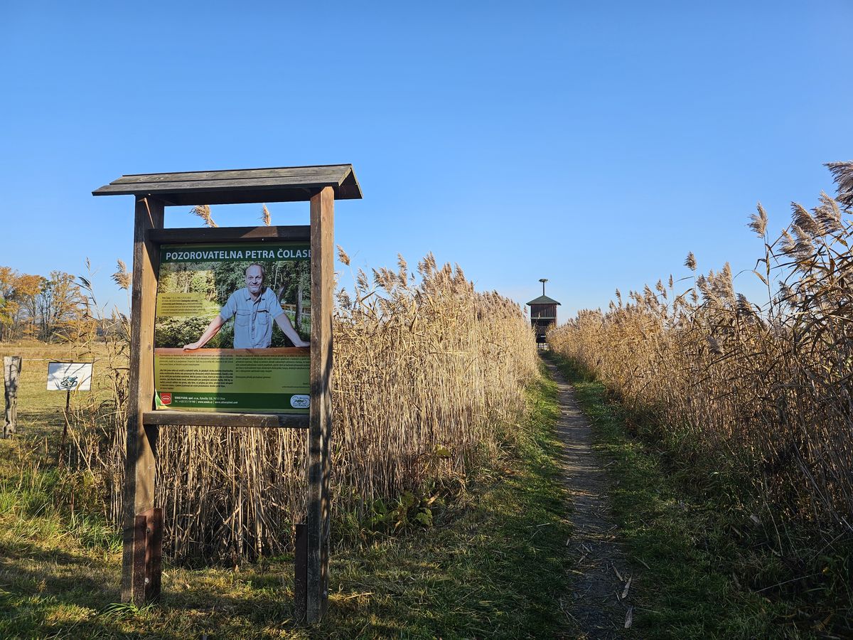 Volně přístupná a otevřená je Pozorovatelna Petra Čolase, ke které vede stezka po obou stranách lemovaná rákosem. Pozorovatelna je dřevěná, vysoká 7 metrů, a na jejím vrcholu se nachází čapí hnízdo. Do druhého patra se vylézá po strmém dřevěném schodišti.