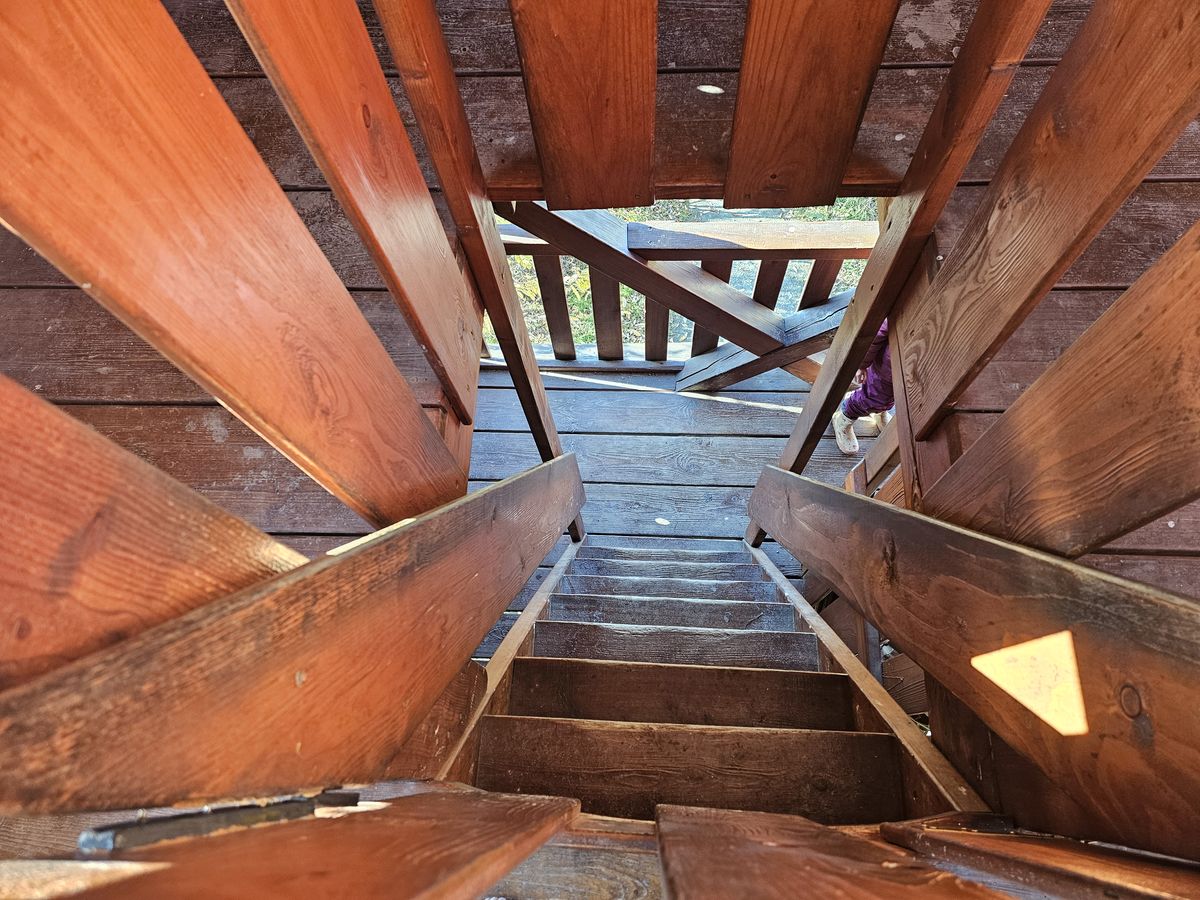 V prvním patře najdete další naučné cedule s informacemi o ptácích, které můžete z pozorovatelny spatřit. Ve druhém patře se pak můžete kochat krásnými výhledy na okolní krajinu. V dálce jsme opět viděli divoké exmoorské koně, nad vodními hladinami proletěla volavka bílá a od návštěvníků, kteří sem chodí pravidelně, jsme se dozvěděli, že v létě zde spatřili i želvu.