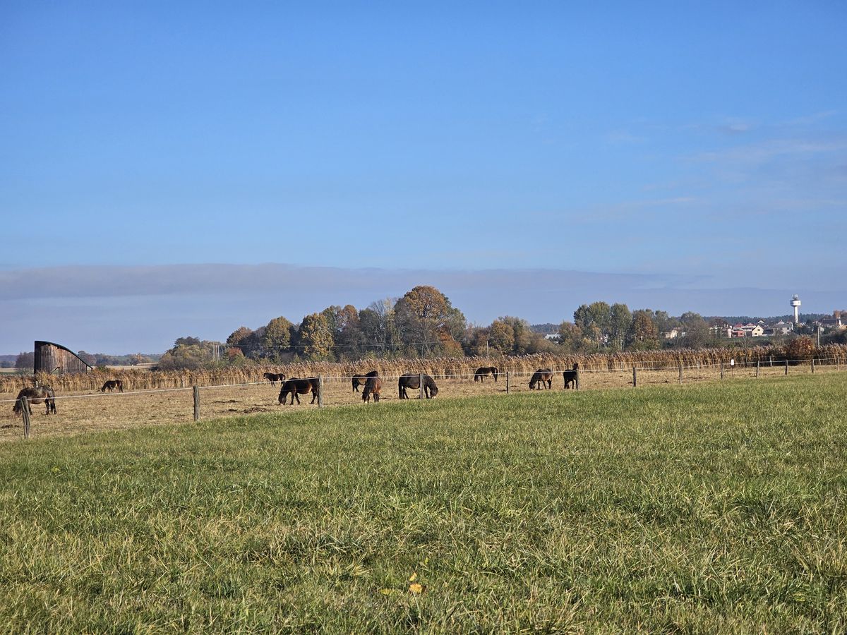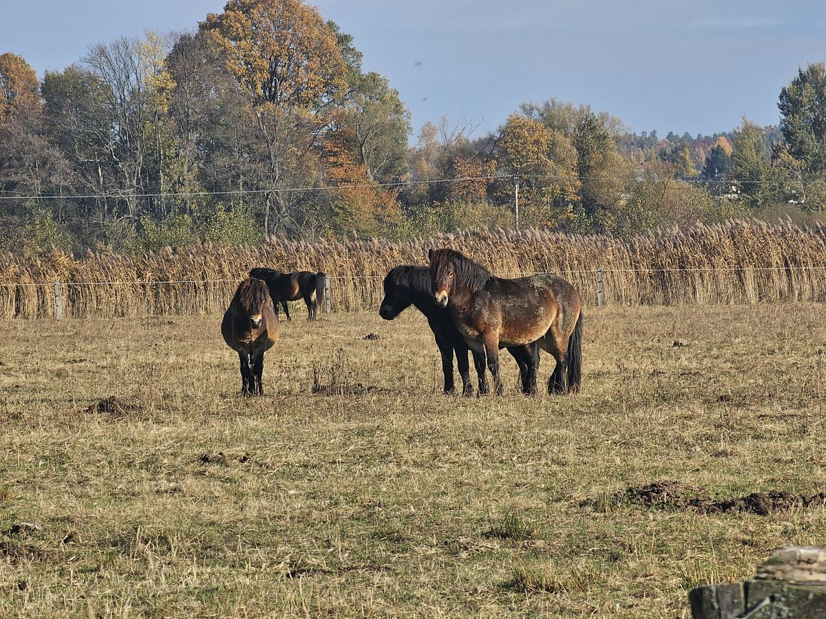 V ohradách v dálce jsme viděli pást se exmoorské divoké koně – byla to krásná podívaná. Platí zde přísný zákaz krmení. Jedná se o plemeno koní pocházející z jihozápadní Anglie.
